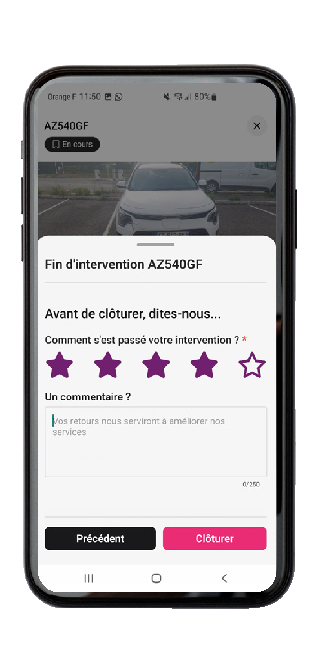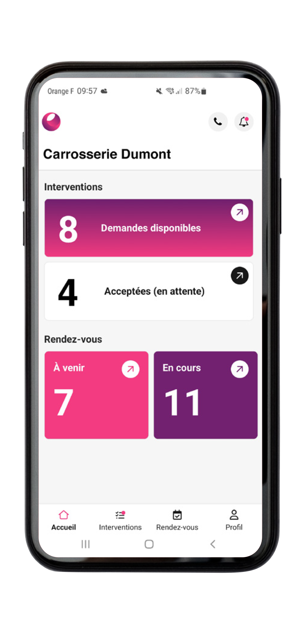 Chaque demande d’intervention est géolocalisée : elle vous est proposée si vous êtes dans la zone concernée par le conducteur. Vous avez accès à toutes les informations utiles (photos, type de véhicule, nature du sinistre, estimation du chiffre d’affaires) avant de décider si vous acceptez.