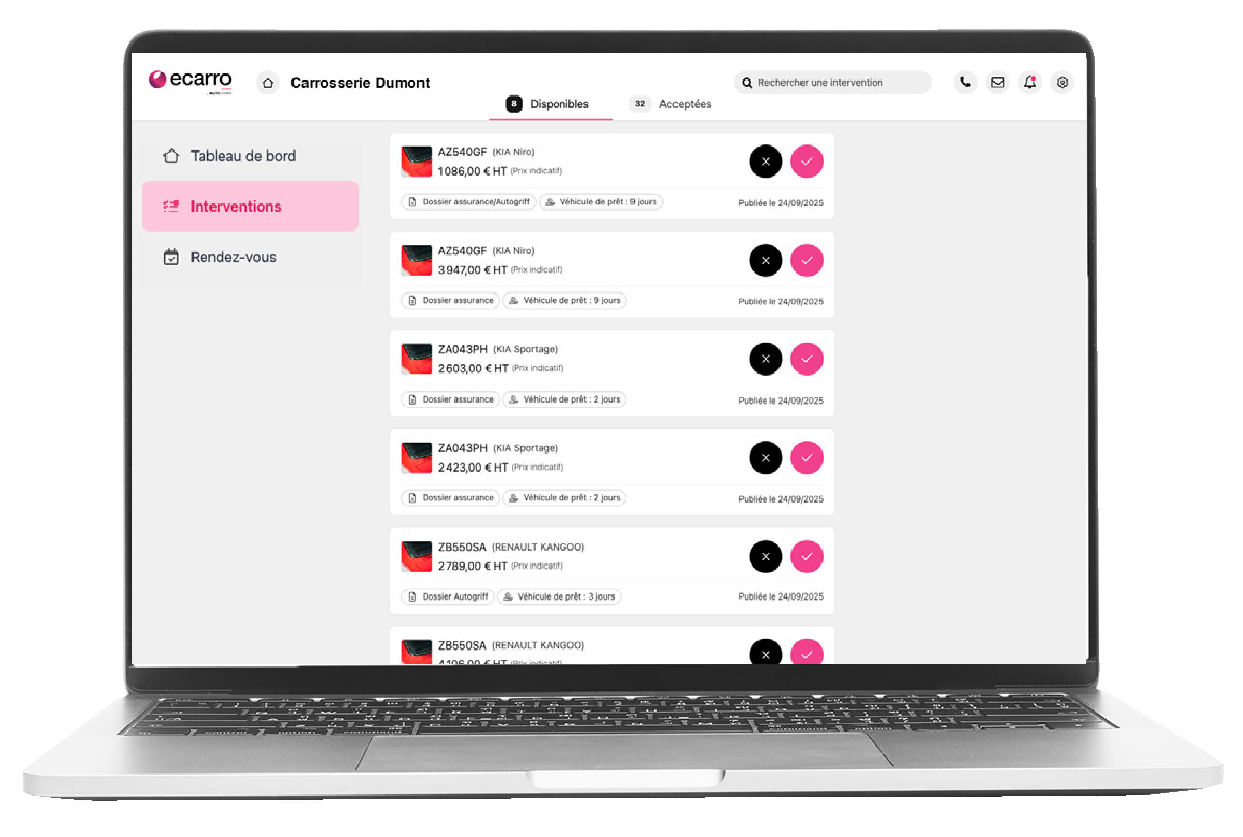 ecarro connecte les carrossiers indépendants aux besoins des flottes automobiles pour simplifier la gestion des interventions et développer leur business en toute liberté.